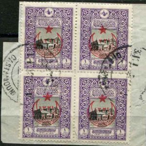1917 Turkey KARS (ADANA) cds on block of 4