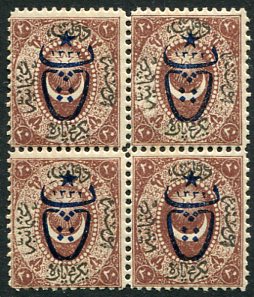1917 Turkey 5pa on 2pa Surcharge NHM Block of 4