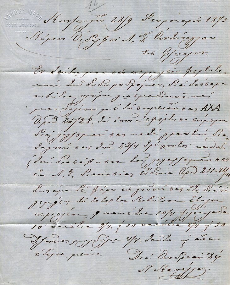 1877 Turkey Sirkeci Commercial Dulos Entire to Plovdiv