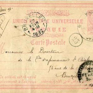 1892 MUDANYA Commercial Postal Card to Belgium