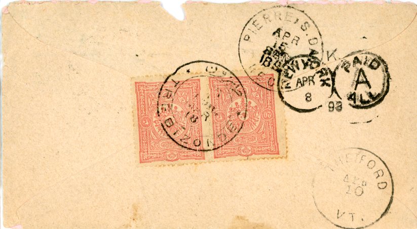 1893 Turkey Trabzon to Vermont redirected to Pierre USA