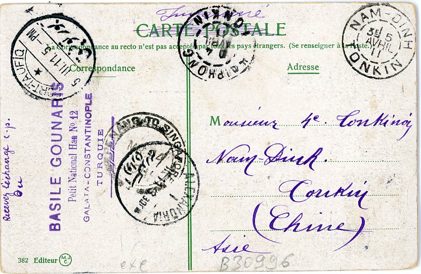 1911 Turkey Prinkipo to Tonkin Vietnam via Singapore
