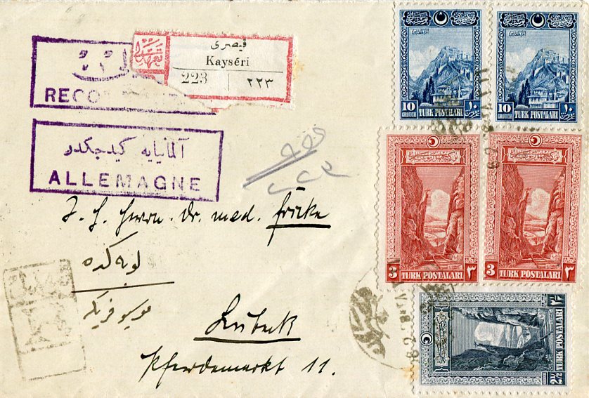 1929 Turkey 25k Ataturk Registered to Kolbermoor