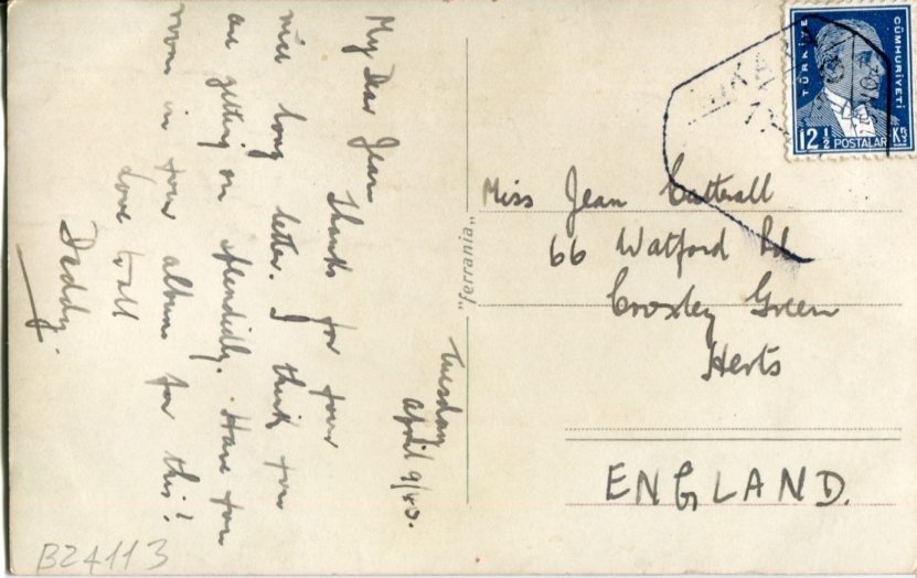 Turkey Ankara 1940 Photocard TPO to England