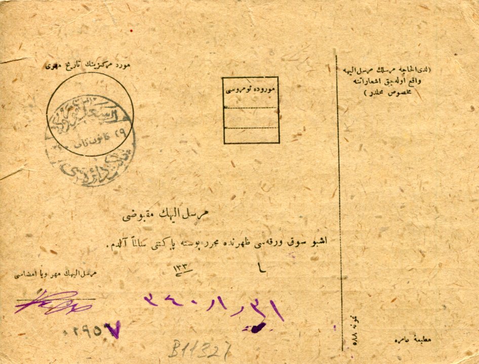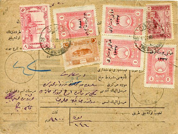 1924 Turkey Trabzon to Istanbul Parcel Card