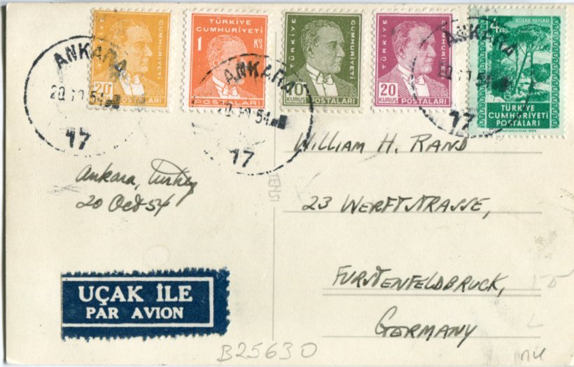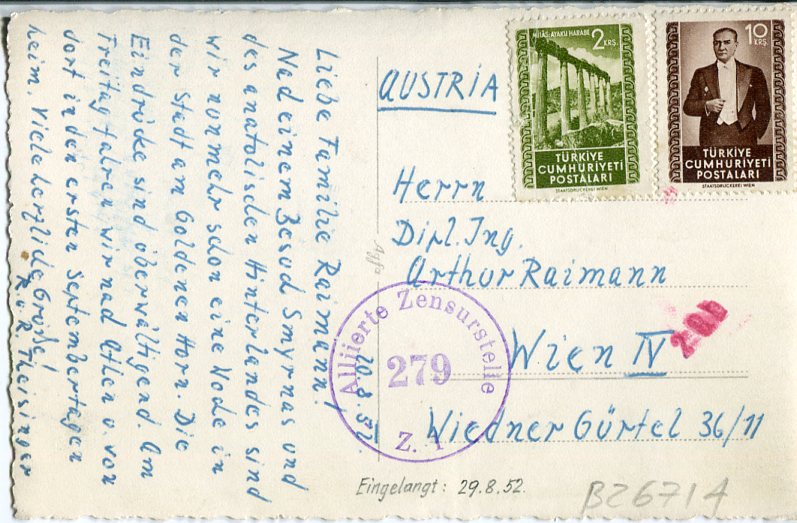 1955 Turkey Yenisehir Ankara to Vienna Photocard
