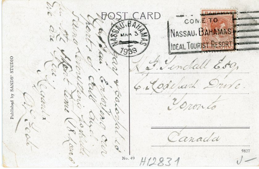 Bahamas Nassau Bathing Beach 1939 to Canada ed Sands