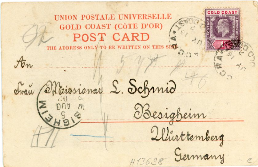 Ghana Cape Coast card 1904 from Old Calabar Nigeria