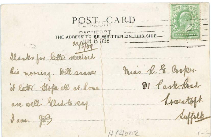 Gambia River Kossun 1909 to Lowestoft