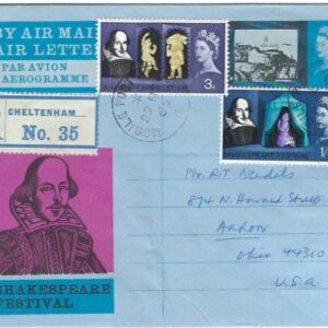 1964 GB Shakespeare 6d Air Letter Registered to USA