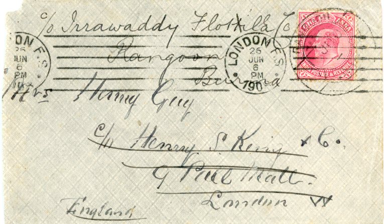 1908 Burma Rangoon 1an India to London