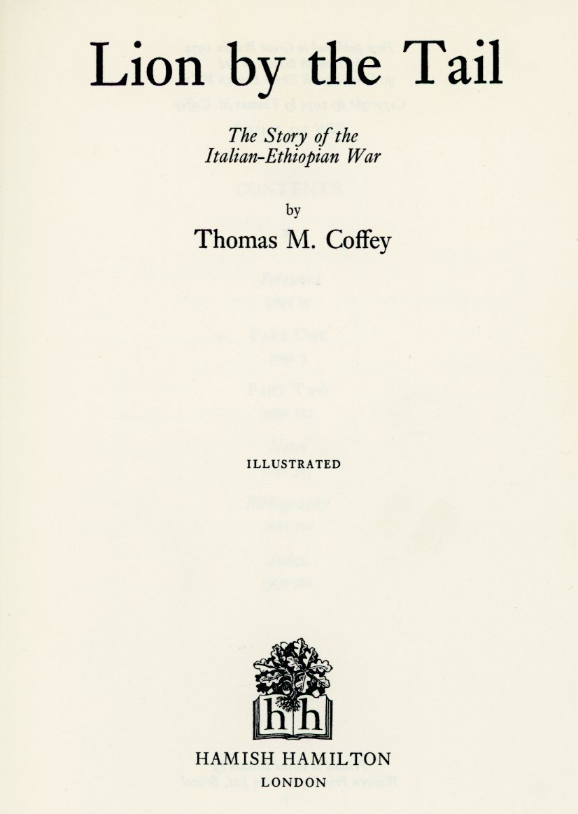 Ethiopia Italian War Lion by the Tail by Coffey 1974