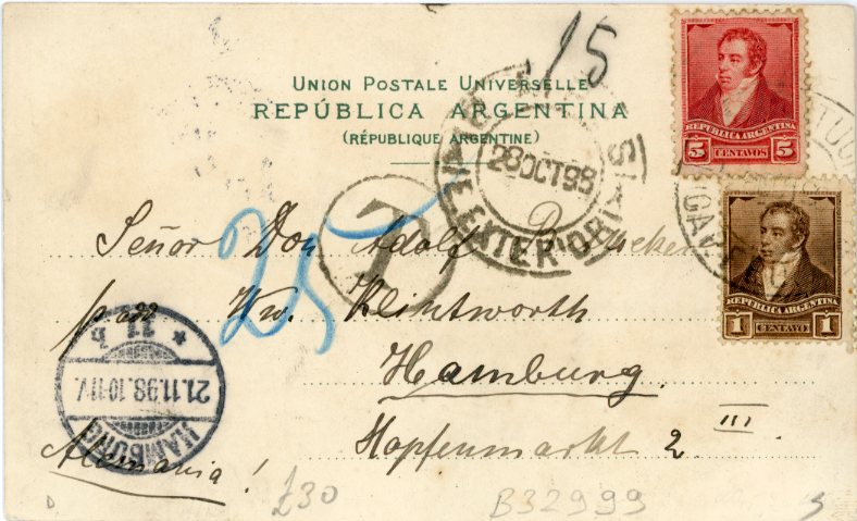 Argentina Buenos Aires 1898 Postage Due to Hamburg ed Schürer