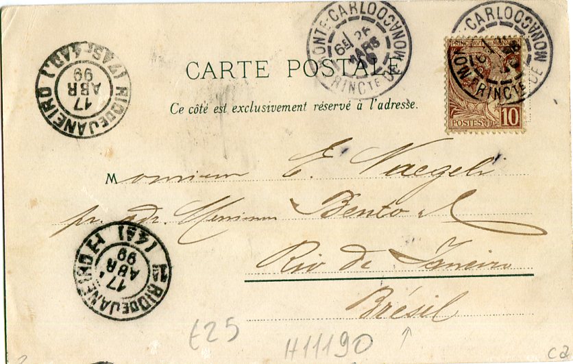 Monaco Monte Carlo to Brazil 1899 ed Künzli