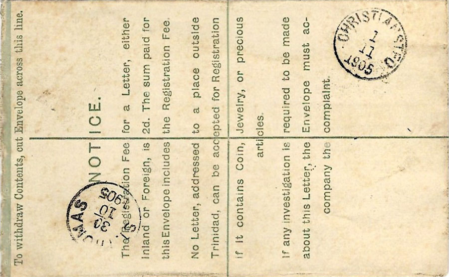 1905 Denmark DWI incoming Trinidad Registered Stationery