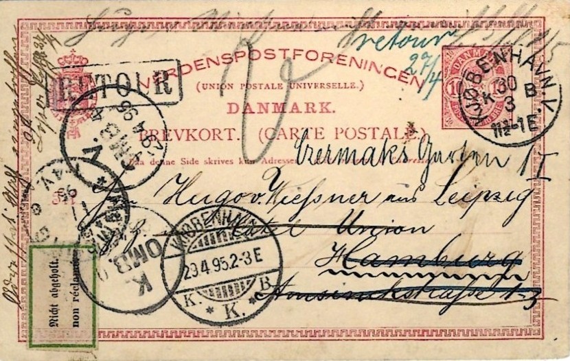 1895 Denmark Non Reclame Retour to Hotel in Hamburg