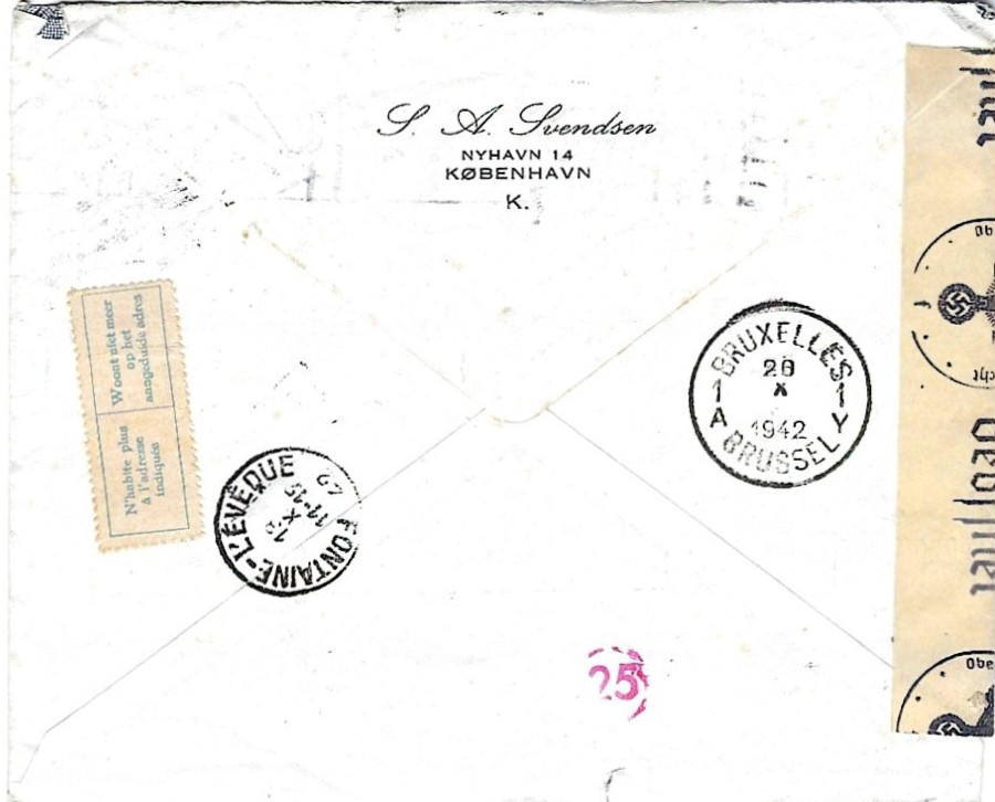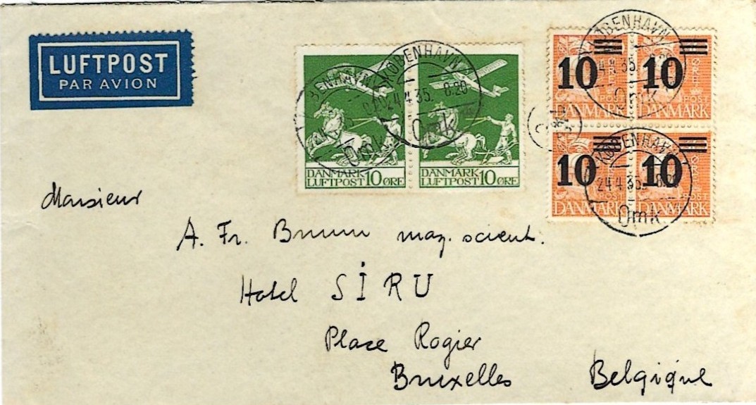 1935 Denmark Airmail to Belgium 10 on 30o block