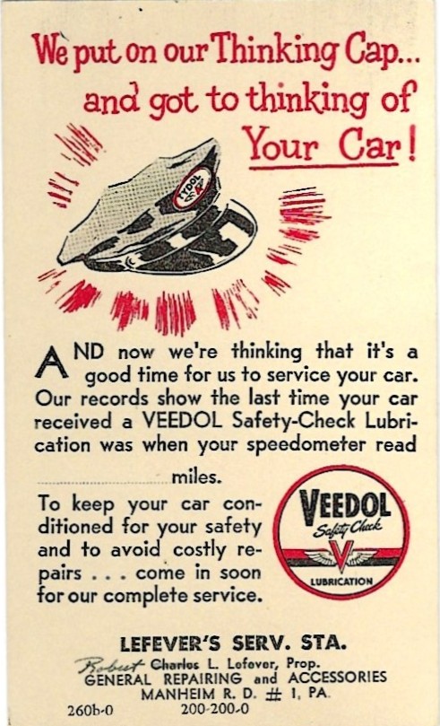 1951 USA Car Oil Veedol Lubrication 2c Franklin Stationery