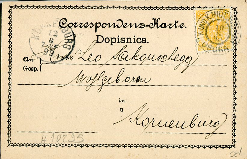 1899 Bosnia Usora to Korneuburg Sarajevo ed Lederer