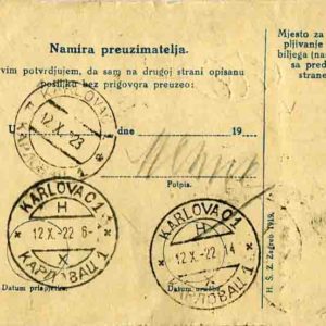 1922 Yugoslavia Zagreb Karlovac Parcel Card