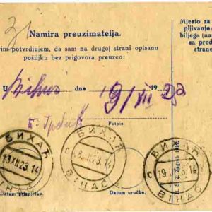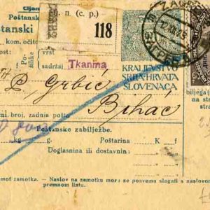 1923 Yugoslavia Zagreb Bihac Parcel Card
