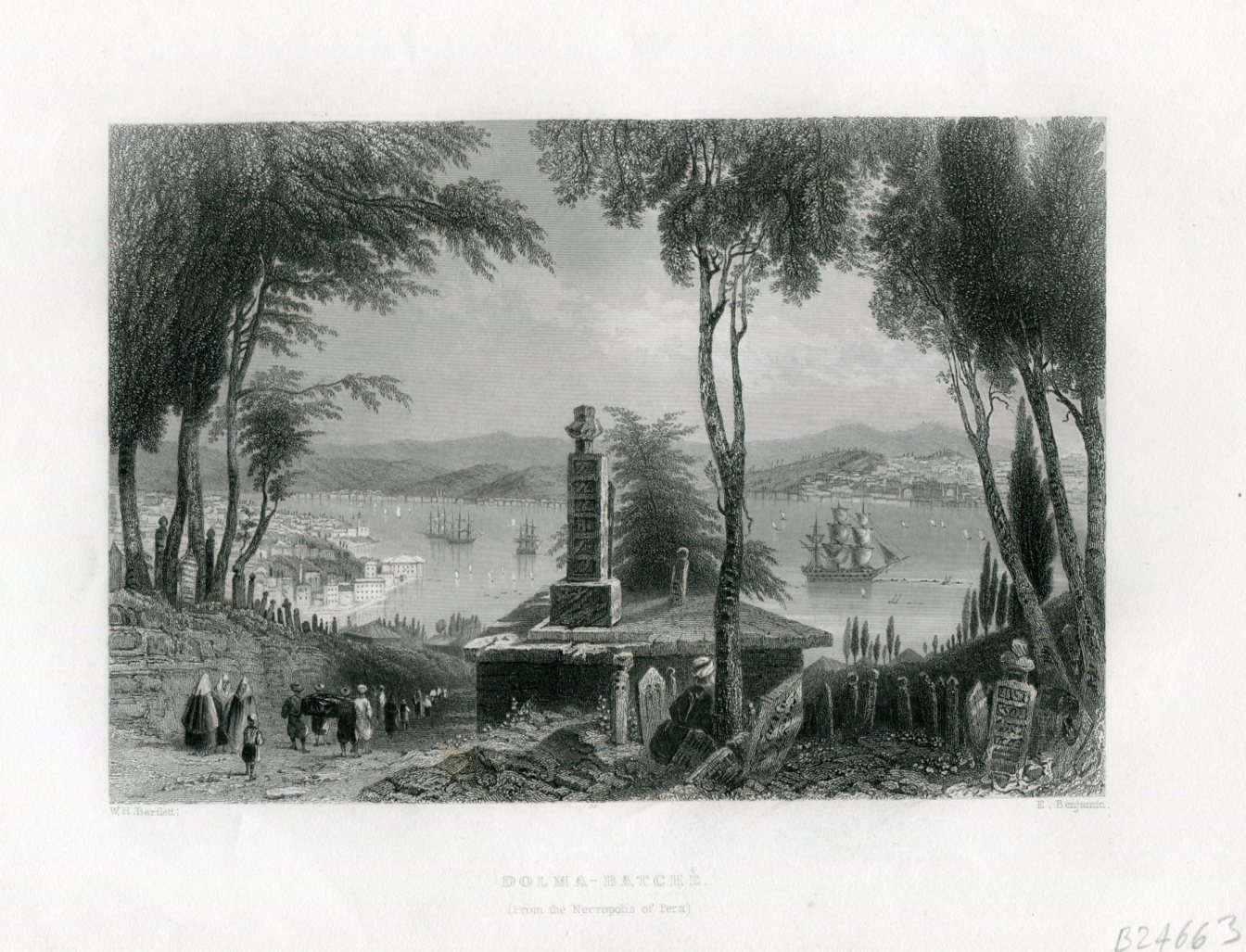 circa 1840 gravure of W. H. Bartlett titled ‘DOLMA-BATCHE (From the Necropolis of Pera). Overall size 270 x 190mm.
