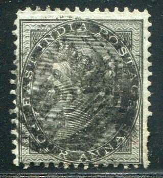 India Used Abroad – Burma: 1855 (1 October). East India 4a. black on blue glazed paper struck by “B156” hand stamp for Rangoon. Trimmed perf on right. Sg. 35