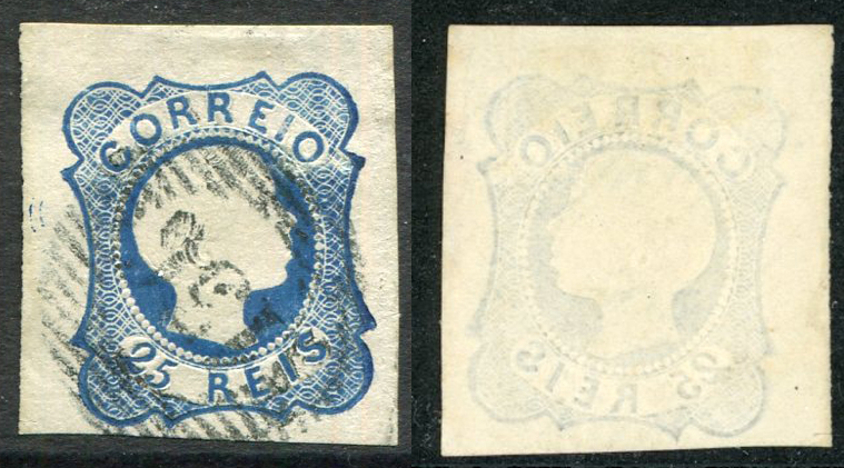 Portugal: 1855 King Pedro V 25r. blue with dotted ‘156’ cancellation. Sold as official reprint.