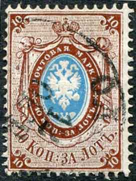 Russia: 1858 (September). The third issue coat of arms 10k fine used. Sg. 5, Sc. 8