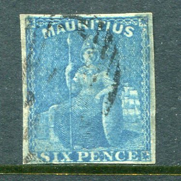 1859 Mauritius 6d blue Used Sg 32 quantity