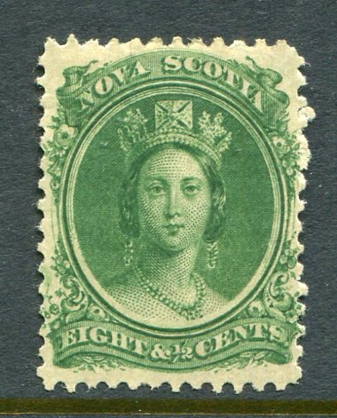 Canada – Nova Scotia: 1860 yellowish paper 8 1/2c. deep green mint o.g. Sg. 14 *