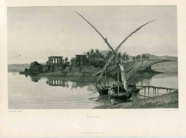 Egypt: 1860s gravure titled “PHILAE” by H. Penn and C. Cousen on thick paper. 280 x 212 mm.