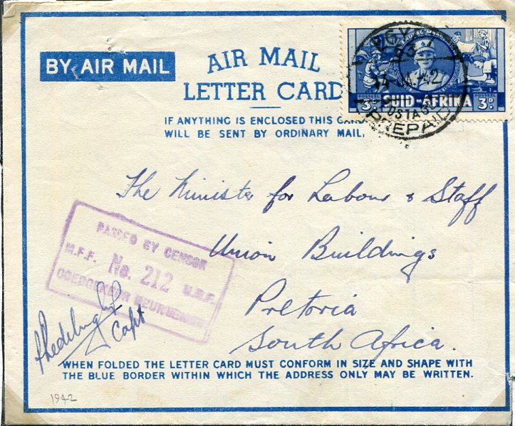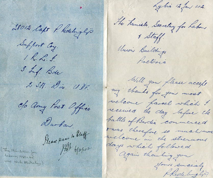 1942 South Africa Libya Battle of Bardia Letter