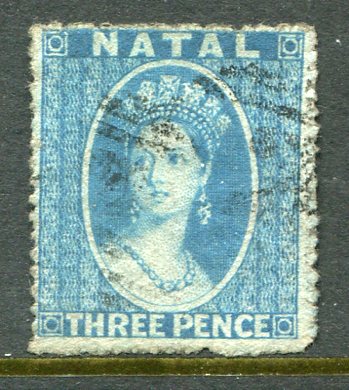 1861 Natal 3d blue Used Sg 12 quantity