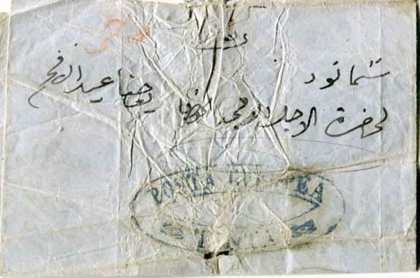 Egypt: 1862 folded small entire (85 x 55 mm) struck by type III POSTA EUROPEA * TANTA handstamp.