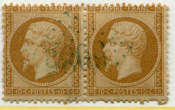 French Levant: Post offices abroad 1862 Napoleon III type 10c pair struck by 5085 grand chiffres for GALATZ (Galati, Moldavia, Romania) handstamp. Yv.21