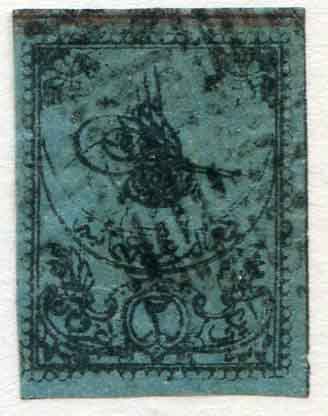Türkiye:1862 Tughra type first printing 2 piasters deep blue with control band at top, fine used. Isfila 1