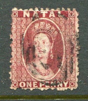 South Africa – Natal: 1863 wmk Crown CC 1d bright-red perf 12 1/2 used. Sg. 22