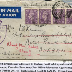 1945 BAPO 5 Algeria Cover to Durban and Kloof