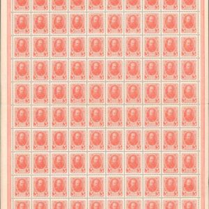 1916 Russia 3k Currency Stamp sheet of 100