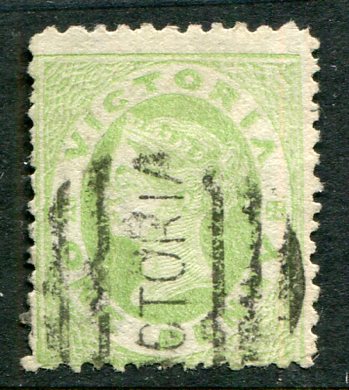 Victoria – Australia: 1863 (September). 1d. pale green used. Sg. 104a