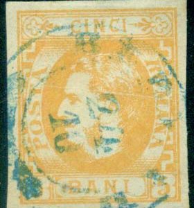Romania: 1864 (May-Sept). White wove paper imperforate 30p pale blue very fine used with BOTESCHANI boxed cancel. SG 37