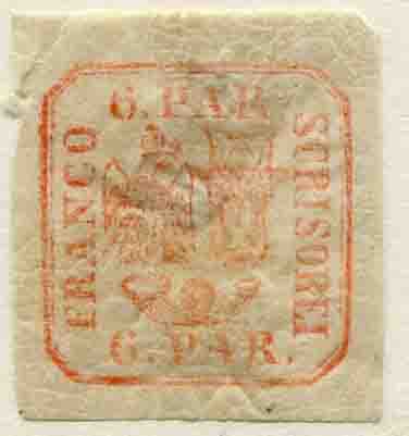 Romania: 1864. Typographed white wove paper imperforate 6p. pale dull rose large part o.g. SG 36, Sc. 20