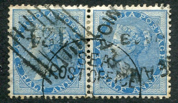 India Used Abroad – Aden: 1865 East India 1/2a blue pair struck by “124” hand stamp. Sg. Z27