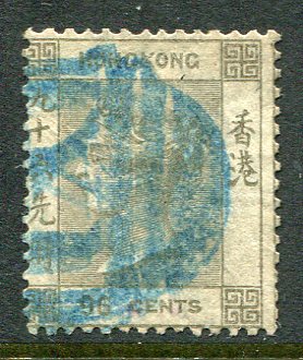 Hong Kong: 1865 QV 96c brownish grey wmk. Crown CC struck by killer type handstamp. Sg. 19