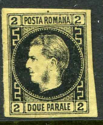 Romania: 1866 (27 July). Prince Carol issue thick paper 2p imperforate large part mint o.g. Sg55