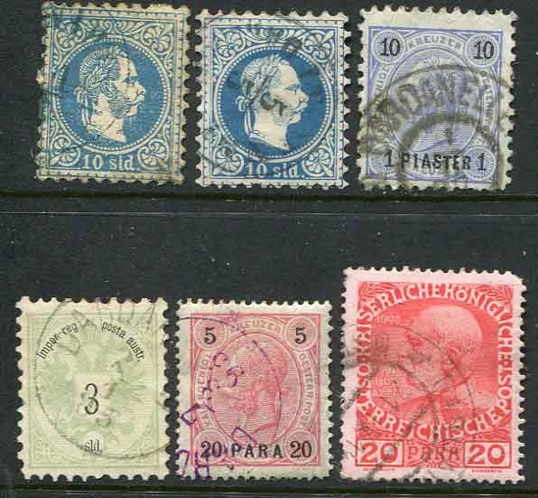 Austrian Levant: Post offices in the Turkish Empire 1867-1908 issues struck by various types of DARDANELLI (Canakkale, Turkey) datestamps.