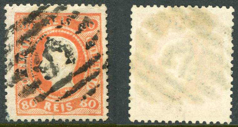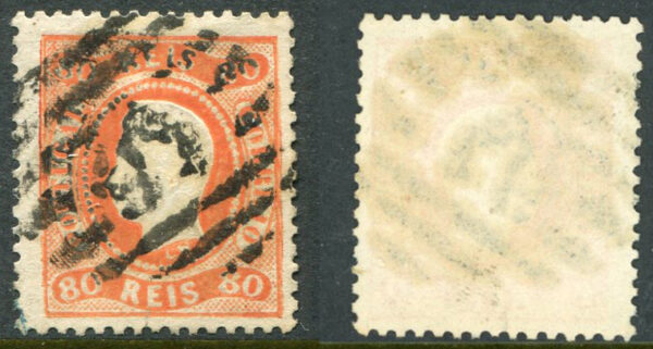 1867 King Luis 80r. orange perf. 12 1/2 used.