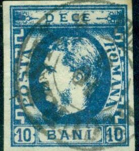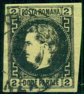 Romania: 1867 (1 Feb). Prince Carol thin paper imperforate 2p black/yellow, very fine used. Signed. SG 60
