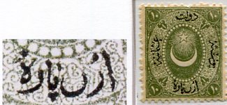 Ottoman Empire: 1867 prepared for use, but not issued Dulos type 10pa mint o.g. with no dot on Arabic “nun” at lower overprint variety. *
